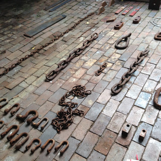 As I arranged the chains, the interplay between the clean lines of the stainless steel and the textured rusted elements created a dynamic tension—an effect I actively sought to evoke in the installation.